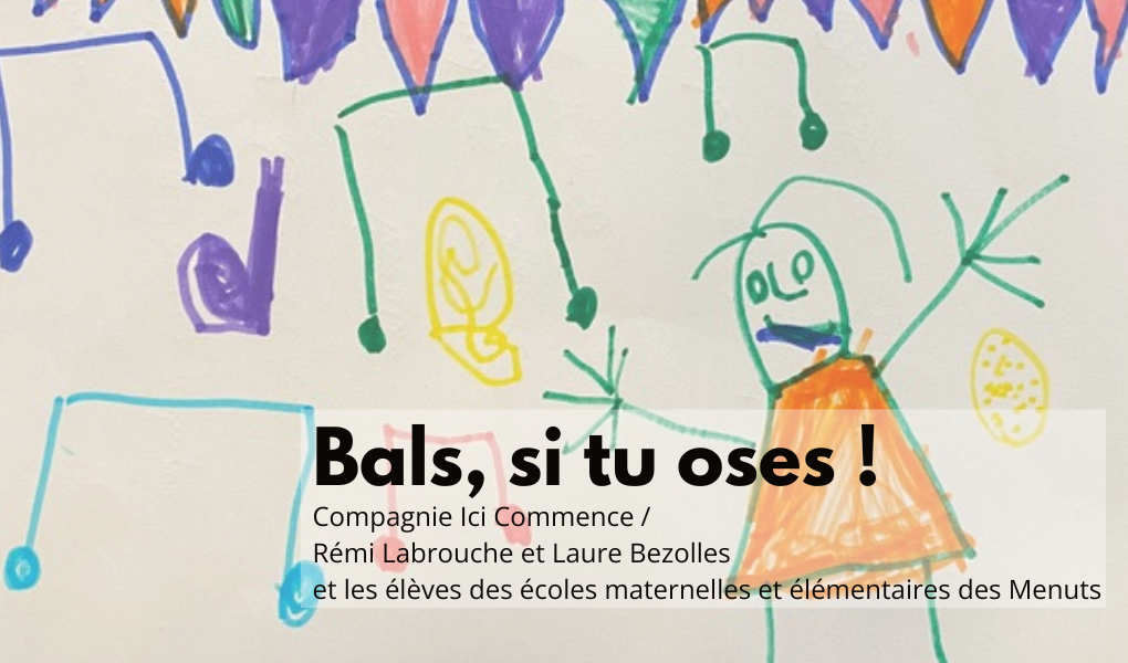 Rémi Labrouche et Laure Bezolles de la Compagnie Ici Commence proposent de suivre les enfants des écoles primaires et maternelles des Menuts, de bals en bals. Une invitation à danser librement et dépasser les regards pour être qui on veut ! Alors, ne restez pas sur le bord de la piste, parez-vous de vos plus beaux atours, n’oubliez pas votre carton d’invitation, retrouvez votre innocence et surtout, surtout, révisez vos danses. Les enfants vont vous endiabler ! Peut-être croiserez-vous le final dans la rue des Menuts le jeudi 13 juin entre 16h30 et 17h.