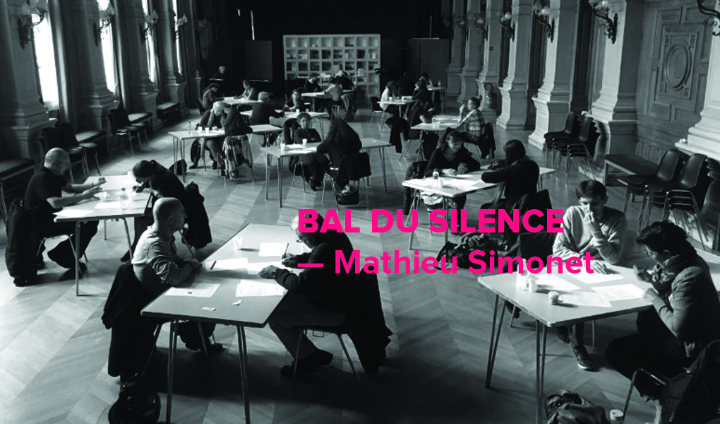 Outre les balades créatives qu’il crée aux Aubiers et la Benauge, Mathieu Simonet propose pour Chahuts un bal du silence : des couples, crées de manière aléatoire, communiquent par écrit.