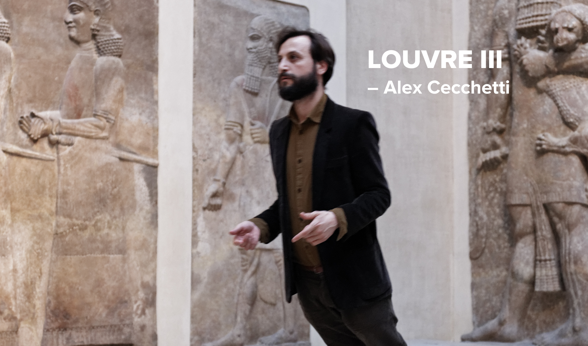 On suit ainsi le performer dans les salles et les couloirs du Louvre avec quelques hermaphrodites et une rivière souterraine, qui n’existe pas encore, mais qui ramène aux magnifiques jardins suspendus de Babylone. Le langage poétique et gestuel d’Alex Cecchetti rapproche mystérieusement les participants pour les embarquer dans des rituels et des voyages où la perception et les grandes questions existentielles sont remises en jeu.
