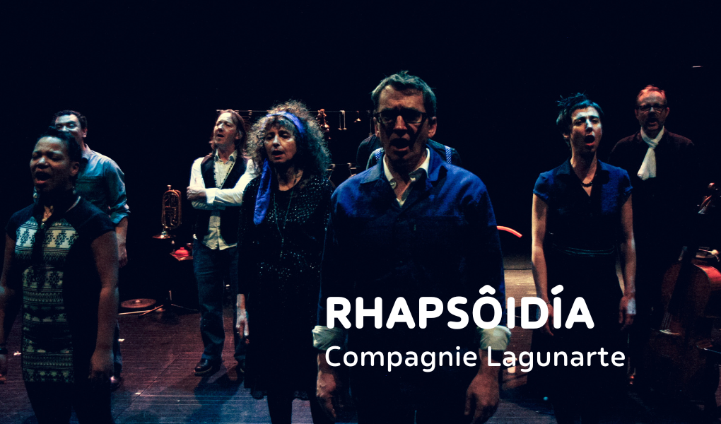 Il restitue son odyssée et il est Ulysse. Rhapsôidía se construit à partir de rencontres que chacun des musiciens va provoquer sur son chemin. Chacun ira d’abord explorer le monde qui l’entoure et collecter des sentiments, des mots et des sons. À travers cet opus, la compagnie LagunArte souhaite faire exister un monde varié et complexe, ouvert à sa propre transformation, dans une pleine prise de conscience. Elle puise la source dans la rencontre sur les territoires, territoires géographiques, sociaux, culturels, physiques, dans leurs diversités. Dur, doux, âpre ou voluptueux, déterminé ou fragile, le chant nous montre ici qu’il demeure proprement humain.